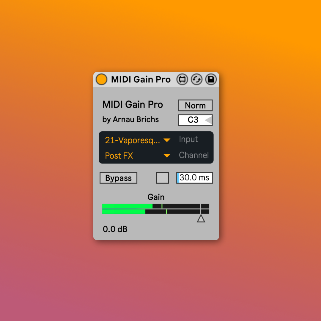 | Description: | FREE AUDIO DEVICE Control the gain of a sound according to note on/offs received from a MIDI track. You can also invert it, so that you silence a sound according to a MIDI note. ---- MIDI Gain Pro allows you to gate notes according to a desired pitch, so that you can have different MIDI pitches gate different devices on your chain. It also takes the amplitude of the incoming MIDI data into account. If you enjoy the device, please consider supporting me here: https://www.paypal.com/donate/?hosted_button_id=EMY45K7MK3QB6 –––––––––––––– Change-log v.1.2 Bug fixes, dry/wet control. v.1.1 GUI Update. |