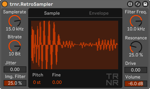 | Description: | RetroSampler is a lo-fi sample player inspired by hardware samplers of the 90s. It features adjustable sample and bit rate, clock jitter control, low pass filter with drive control and integrated ADSR envelope. Lowering the sample rate will introduce a sought-after "ringing" effect that is not just a simple decimation effect: the resampling algorithm accurately follows the transposed pitch without interpolation. Runs on 64bit Windows and Mac (Intel+Apple Silicon) systems. A fully featured version can be found here: ternar.tech/audio-software/retrosampler-pro Changelog: Version 2.2: - Completely rewritten sampler core in C++ to optimize load times, CPU usage and file footprint - New genuine envelope generator: a linear envelope with additional segments to mimic exponential/logarithmic slopes Version 2.0: - Updated resampling algorithm - Updated clock jitter algorithm - Added Imaging filter - Bit reduction now uses uLaw compansion - New filter design with drive control - Full ADSR envelope Version 1.01: - Updated resampling algorithm with proper anti-aliasing Version 1.0: - Initial release |