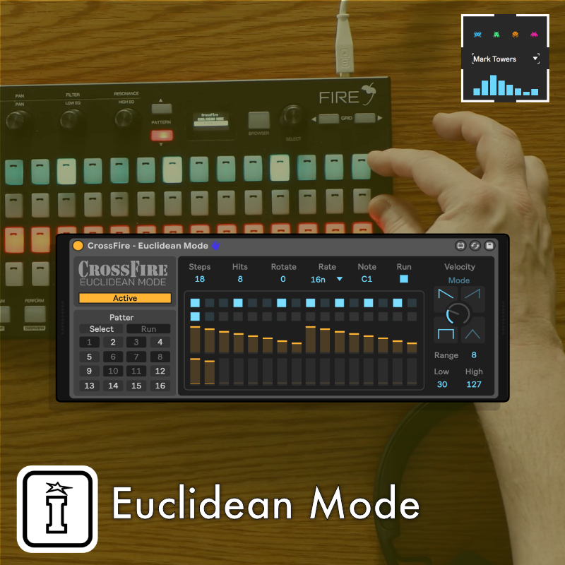 | Description: | If you loved Polypin from Ableton Certified Trainer, Mark Towers then you're going to love this new Euclidean Mode sequencer that can be controlled by the mouse or directly from the AKAI Fire when use in conjunction with nativeKONTROL's Crossfire Control Surface Script. With the latest version you can also control the device from the dials of the Push 1 & 2 along with the Akai Force. Inspired by the 16 x 4 layout of the Fire's button matrix, Crossfire Euclidean Mode allows for up to 16 patterns each with up to 32 steps. 16 Patterns 1-32 Steps per Pattern Velocity Variation Engine PLEASE NOTE: The AKAI Fire integration is only possible if you have the Crossfire Control Surface Script - https://isotonikstudios.com/product/crossfire/ |