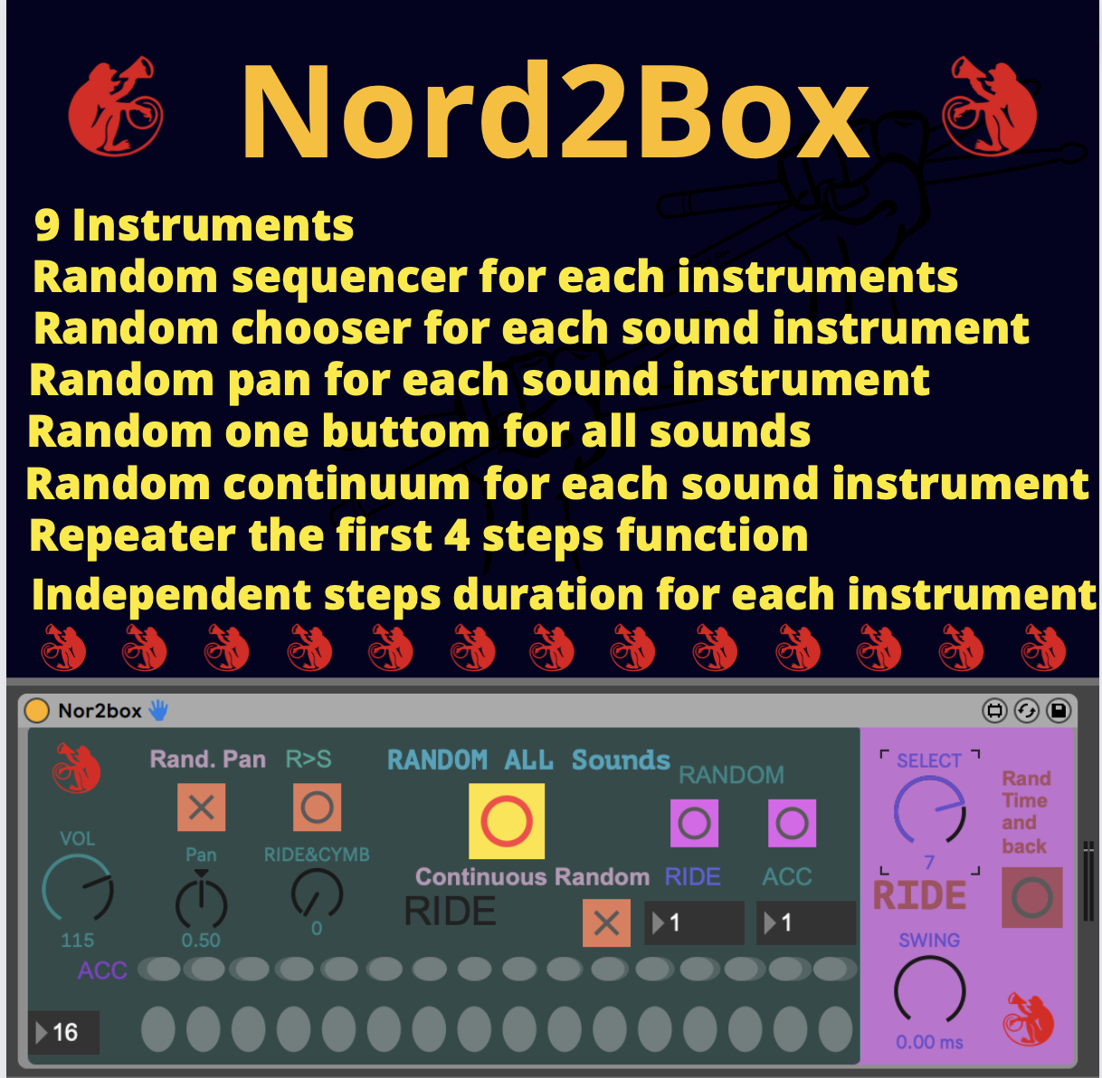 | Description: | Nor2Box is an exotic drum machine with a lots of random parameters. Is a sample sound based instruments but you will not find any TR sound here. It has 9 instruments, with an escalable numbers of steps for sequencing each instrument. Randon function for the seqeuncer with number box to put how many steps you want to put in a random mode in the grid. It has also the same for the accent of each step. Continuos random function to change the sound of the instrument in every step. Big random button to randomize all the sounds at once. Random panning for each instruments. Independent step sequencer number for each instrument. Repeater the first 4 steps function. Poly rythmic is possible. Lots of fun and inspiration for who is looking for a no regular drums beats. See: https://youtu.be/3IGYoXLOOhc Enjoy! Visit: www.monotale.com.ar Follow us : https://www.instagram.com/monotale_instruments/ |