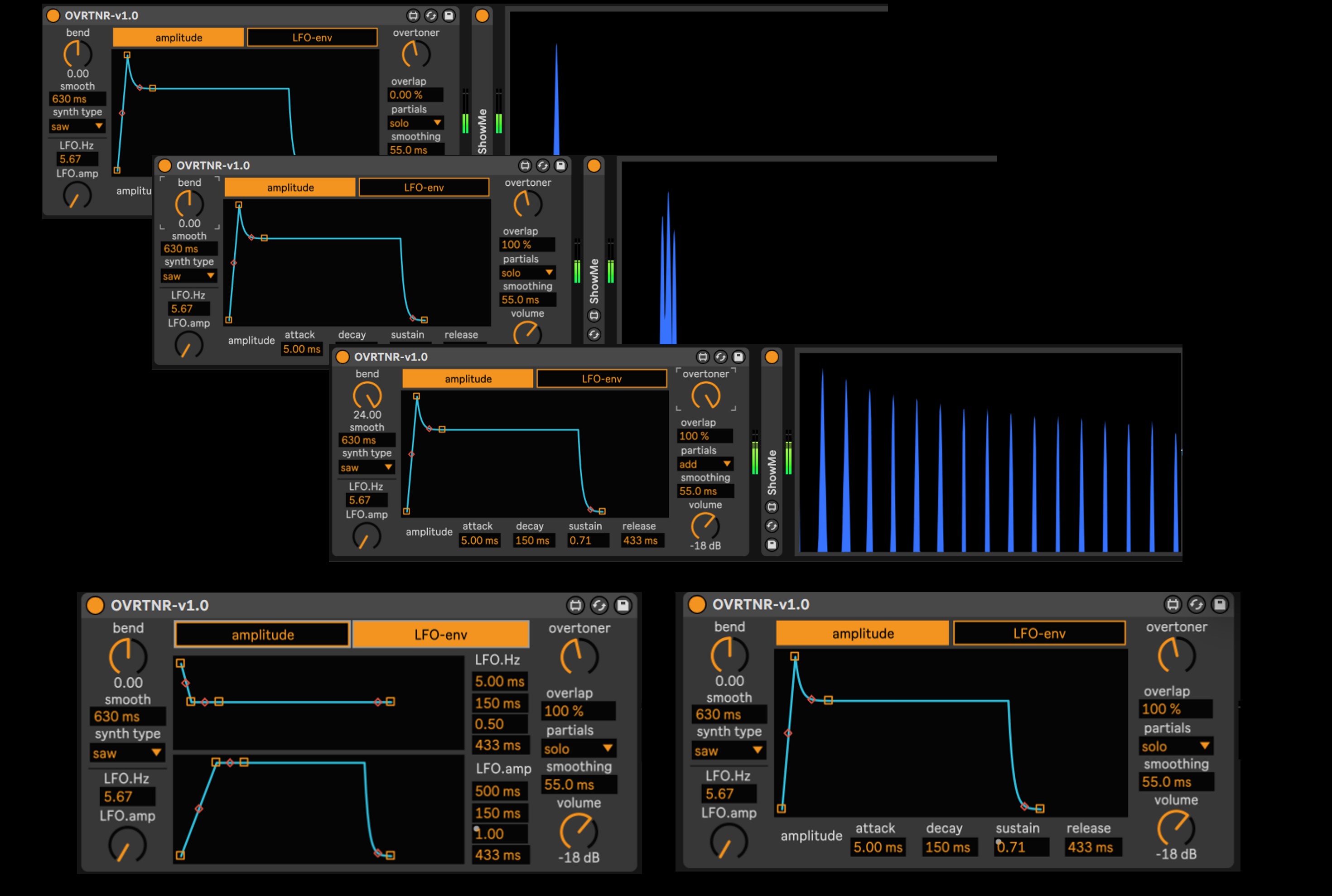 | Description: | OVRTNR is a simple additive synth that lets you sweep through the individual partials (sine waves) of a complex wave (like a saw tooth wave). In solo mode, partials can play one at a time, or with some overlap for smoothly moving between partials. In add mode, sweeping the Overtoner parameter adds or removes partials from the complex wave. The 16 playable voices of this instrument each contain 16 more sub-voices that produce the performable partials. It may take a while for Ableton to load all 256 voices. MIDI notes only. This device does not accept other MIDI inputs or MPE in version 1.0. I'm trying to post 1.0 for free here. if that doesn't work, enter price of $0 on gumroad. I will post updated/supported versions on gumroad if you would like to support more work like this you can pay for other software there: https://langsound.gumroad.com/l/OVRTNR You can see a quick demo: https://www.youtube.com/watch?v=sZT0nwZIy68 |