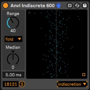 | Description: | Anvl Indiscrete is a realtime MIDI time "humanizer". Two versions are available: - Anvl Indiscrete 600 - Anvl Indiscrete 1200 Pulls notes off the grid up to [600|1200] samples in either direction. The exact time depends on the project sample rate. The effect is non-destructive and doesn't change the actual MIDI clip. A source track with the device can be bounced to a new clip in another track to record the time-shifted notes. Choice of three randomization algorithms with automatable parameters: - Indiscretion: an approximation of a normal distribution with controllable median - Deviant: a more random distribution with a parameter for controlling the distribution of deviations forward or backward in time - Abnormal: a more random distribution with a parameter for controlling how many notes are pulled off the grid Visual display shows the amount each note is pulled off the grid. Warning: This is a high latency device. Adds [600|1200] samples of base latency to each note. Then the randomization algorithm adds or removes up to [600|1200] samples from the base latency. Indiscrete 600 is recommended for projects with sample rates of 48kHz or below. For higher sample rates consider Indiscrete 1200. |