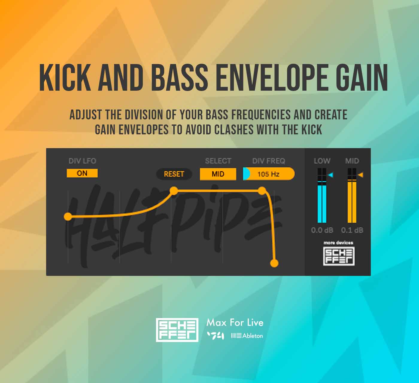 | Description: | This device adjust the division of your bass frequencies and create gain envelopes to avoid clashes with your kick drum. https://nandoscheffer.gumroad.com/l/halfpipe |