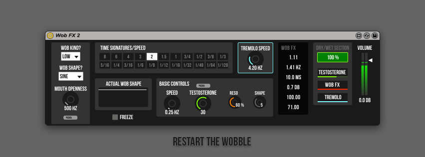 | Description: | ************************************* IMPORTANT: DOWNLOAD AND INSTALL WOB FX FONT http://www.dafont.com/bebas-neue.font ************************************* "Looking for wobble? Look no further. The new Wob FX Max for Live device, developed by Ernesto Cecco D'Ortona, should take care of most if not all of your wobble needs." The Ableton Blog Installation: Mac Install Path: /Users/You/Library/Application Support/Ableton/Library/Presets/Audio Effects/Max Audio Effect Win Install Path: \Users\You\Documents\Ableton\Library\Presets\Audio Effects\Max Audio Effect Hello World: 1. Open Ableton Live 2. Put an Analog on a midi track 3. Put Wob FX next to it 4. Play something with your keyboard I recommend using Wob FX while recording everything you do in a Live's audio track. Wob FX first video: http://www.youtube.com/watch?v=-q9s5b21sTw ------ ------ ------ ------ ------ ------ BE UP TO DATE ;) PLEASE VISIT: www.facebook.com/wobfx or email me: ernestoceccodortona@gmail.com ------ ------ ------ ------ ------ ------ Wob FX by Ernesto Cecco D'Ortona is licensed under a Creative Commons Attribuzione - Non commerciale - Non opere derivate 3.0 Unported License. Permissions beyond the scope of this license may be available at ernestoceccodortona@gmail.com. |
